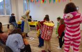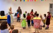 A délután a gyerekek farsangi forgatagával kezdődött. Egészen aprókáktól a nagyobbacskákig, a Csodaországból érkezett Alíztól Babócán keresztül Pókemberig mindenféle rendű és rangú lények és élettelen tárgyak képviseltették magukat.