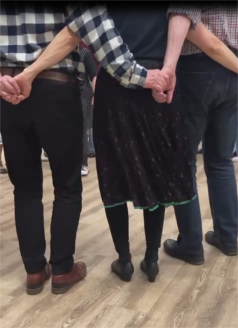 Este fél héttől a felnőttekkel roptuk, nagyon jó hangulatban, jó négy órán keresztül: elsősorban moldvai csángó, illetve felcsíki székely táncokat. Az egyik „szünetben”, aktív pihenés gyanánt, néhányan eljártuk, bemutattuk közkedvelt mezőségi páros-, illetve legényes táncunkat.