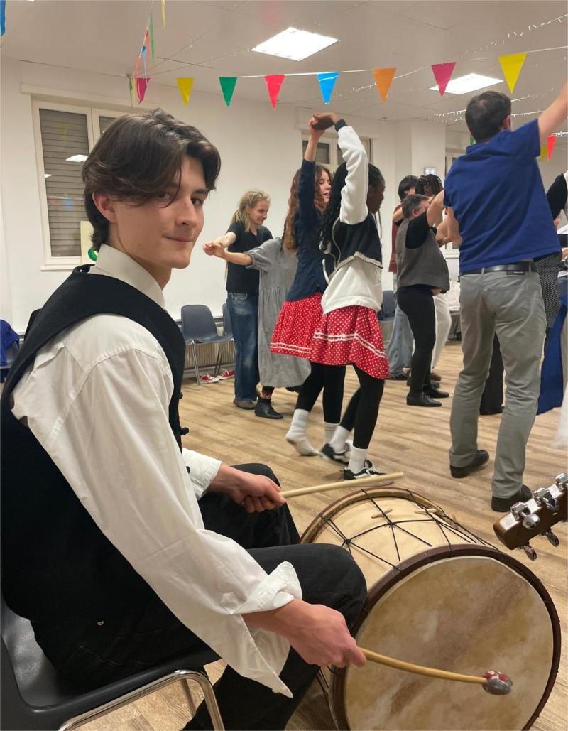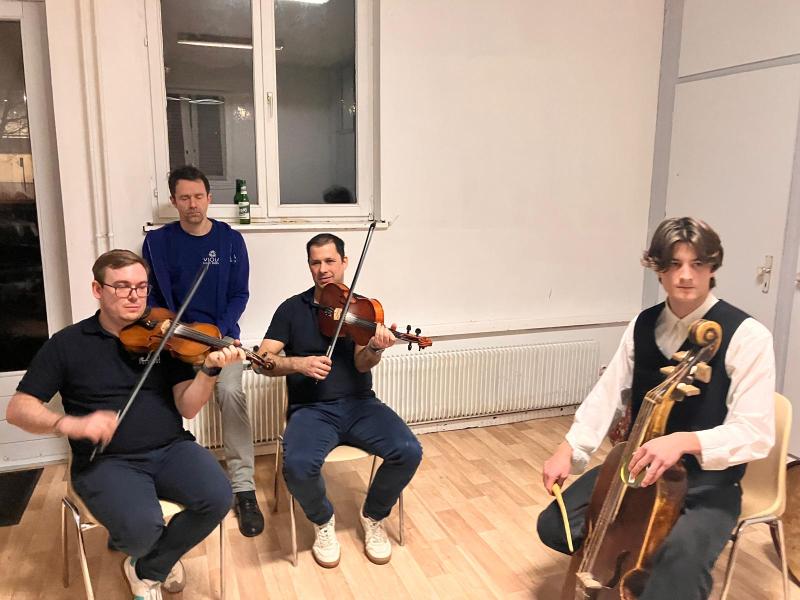 A zenét a brüsszeli Kőrösi Csoma Sándor Program ösztöndíjas Ferenc Tamás, illetve Vörösmarty Bence szolgáltatta. Kiváló dobosra-gardonosra akadtak Strasbourgban, a szervező Lukács Lívia Dávid fiának személyében.