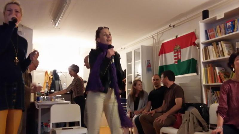 Május 19-re, közkívánatra, megrendeztük a Genfi Magyar Kulturális Központ második karaoke estjét, mely talán ez alkalommal még jobban sikerült, mint a decemberi. Fiatalok és idősebbek közösen énekeltek és táncoltak hajnalig, a magyar és külföldi slágerek legjavára. A vegyes nemzetiségű pároknak köszönhetően egy francia és két olasz férfiember is eljött megcsillogtatni énektehetségét. Az Afrikától a La vie en rose-ig, minden korosztály megtalálta az ízlésének megfelelő dalt a nagyjából 2000 számot tartalmazó listáról. Az Operaház Fantomja duett volt az est fénypontja, melyet a Kodály Stúdió egyik ének-zene tanára és párja adtak elő. Köszönjük a társaságnak, hogy ismét egy kellemes estét tölthettünk el együtt!