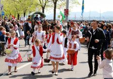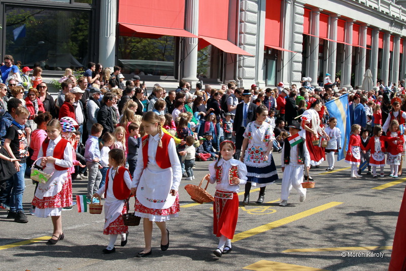 Svájcban a tavasz folyamán is visszatérhet a tél. Ezt tapasztaljuk idén is, az áprilisi hófúvásban sétálva, a félig kibomló virágú orgonák között. De nagy szerencsénkre a Sechseläuten (vagy a züridütschben “Sächsilüüte”, ami szabad fordításban hat órai harangszót jelent) tavaszköszöntő ünnepet követő és megelőző napok páratlanul szép napfényes időjárással köszöntöttek bennünket. A vasárnapi gyermekfelvonuláson nagyon jó volt a hangulat.