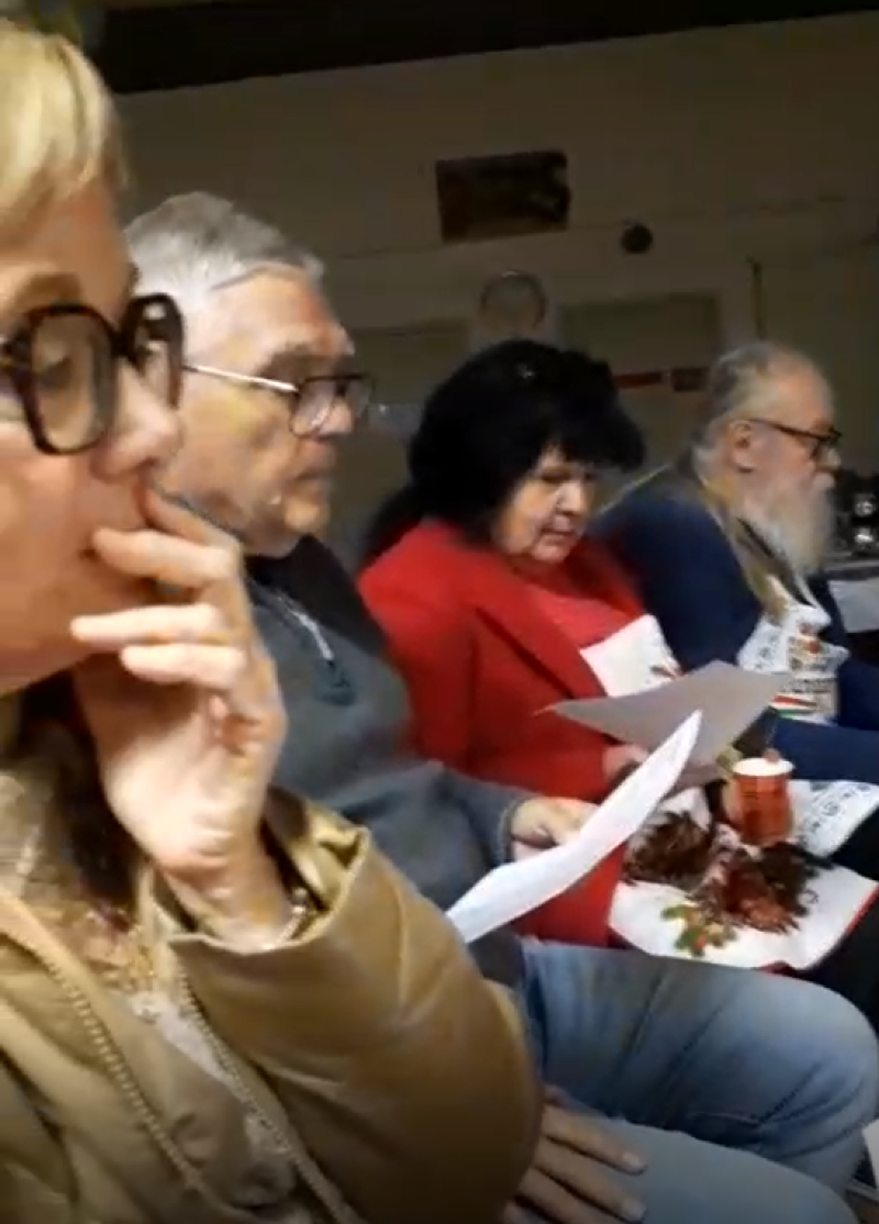 Amíg a tészta kelt, karácsonyi műsort tartottam a résztvevők számára, illetve meg is énekeltettem őket. A magyar kántálások után még néhány francia népies karácsonyi éneket is elénekeltünk, a francia házastársak örömére.