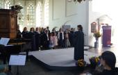 A teltházas koncert végén hatalmas tappsal és gyönyörű virágokkal köszönte meg a közönség és a szervezők a magyar énekkar fellépését.