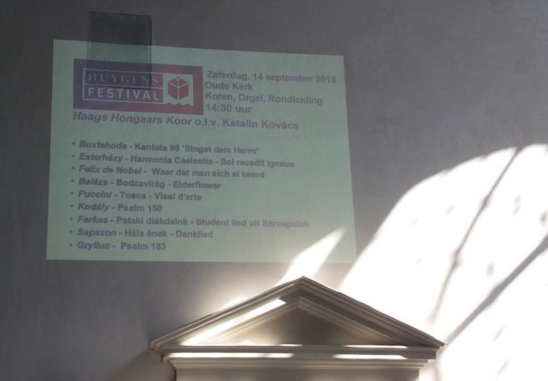 Hollandiában, Voorburgban 2019. szeptember 13-14-15-én tartották meg a Huygens komolyzenei fesztivált, amelynek keretében számos ország zenei tehetsége mutatkozhatott be. A fellépők között külön büszkeséggel tekintettünk a Kovács Kata vezette Hágai Magyar Énekkarra, akik immáron második alkalommal vettek részt a fesztiválon. Műsorukban olyan magyar és nemzetközi klasszikusok is szerepeltek, mint Kodály, Puccini, Felix de Nobel, de többek között Balázs Árpád Bodzavirág című műve is elhangzott. Szólót énekelt Kovács Kata és Kirkósa Orsolya, a zenei kíséretet biztosította Lachegyi Róza (hegedű), Lachegyi Anna (cselló) és Lachegyi Máté (zongora).