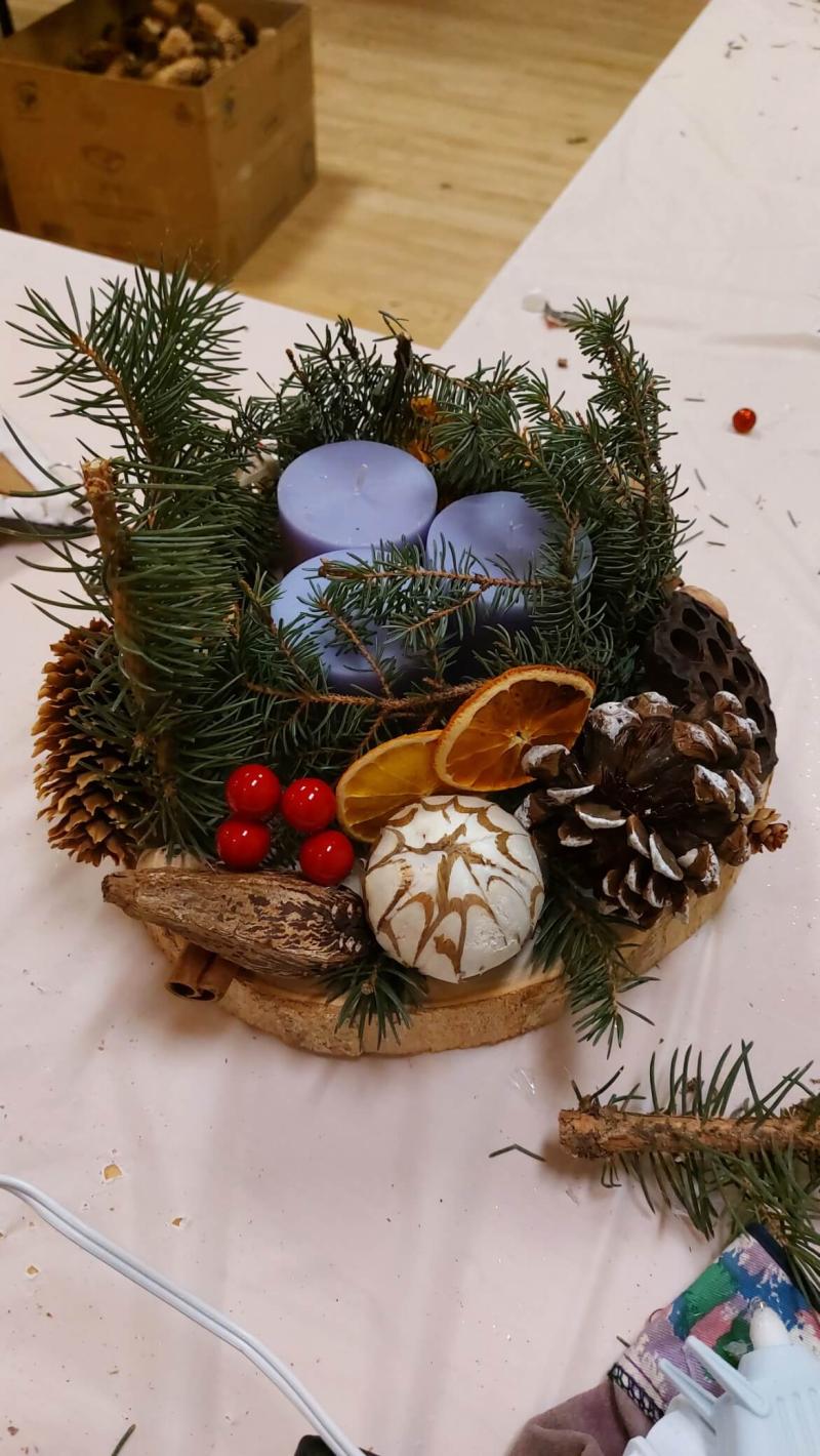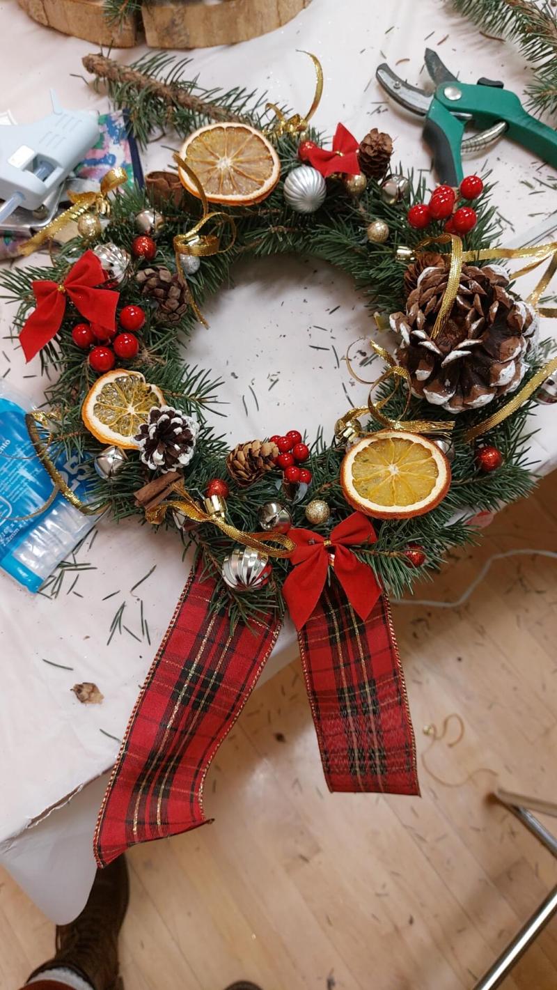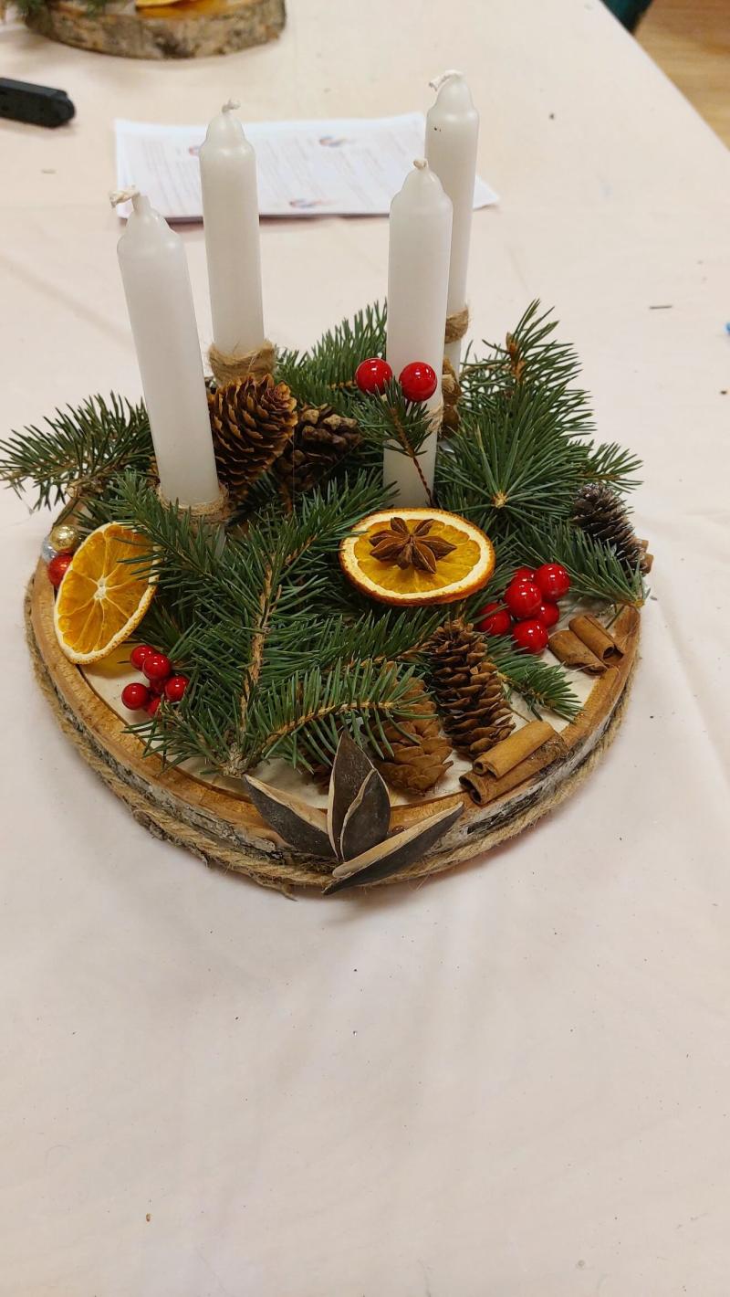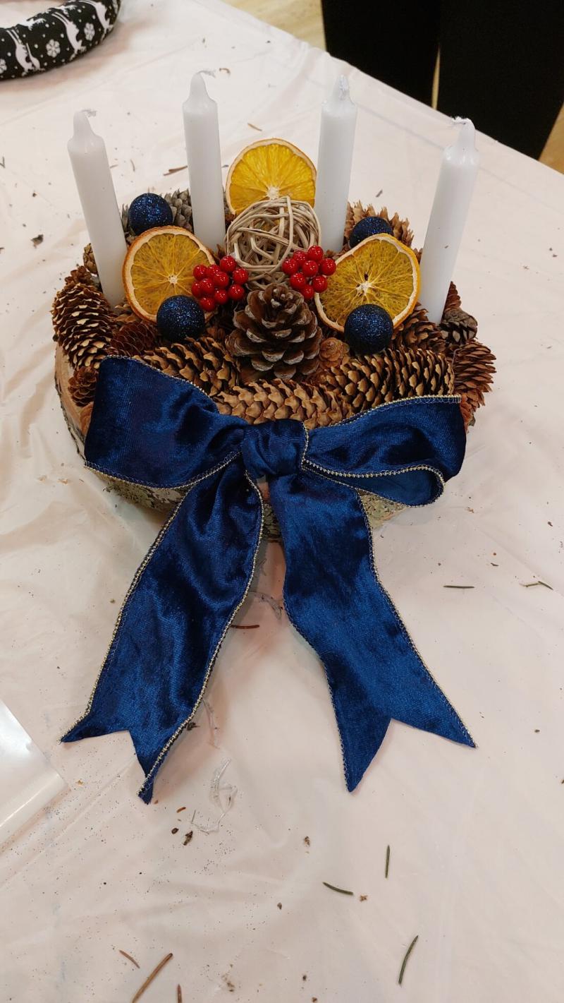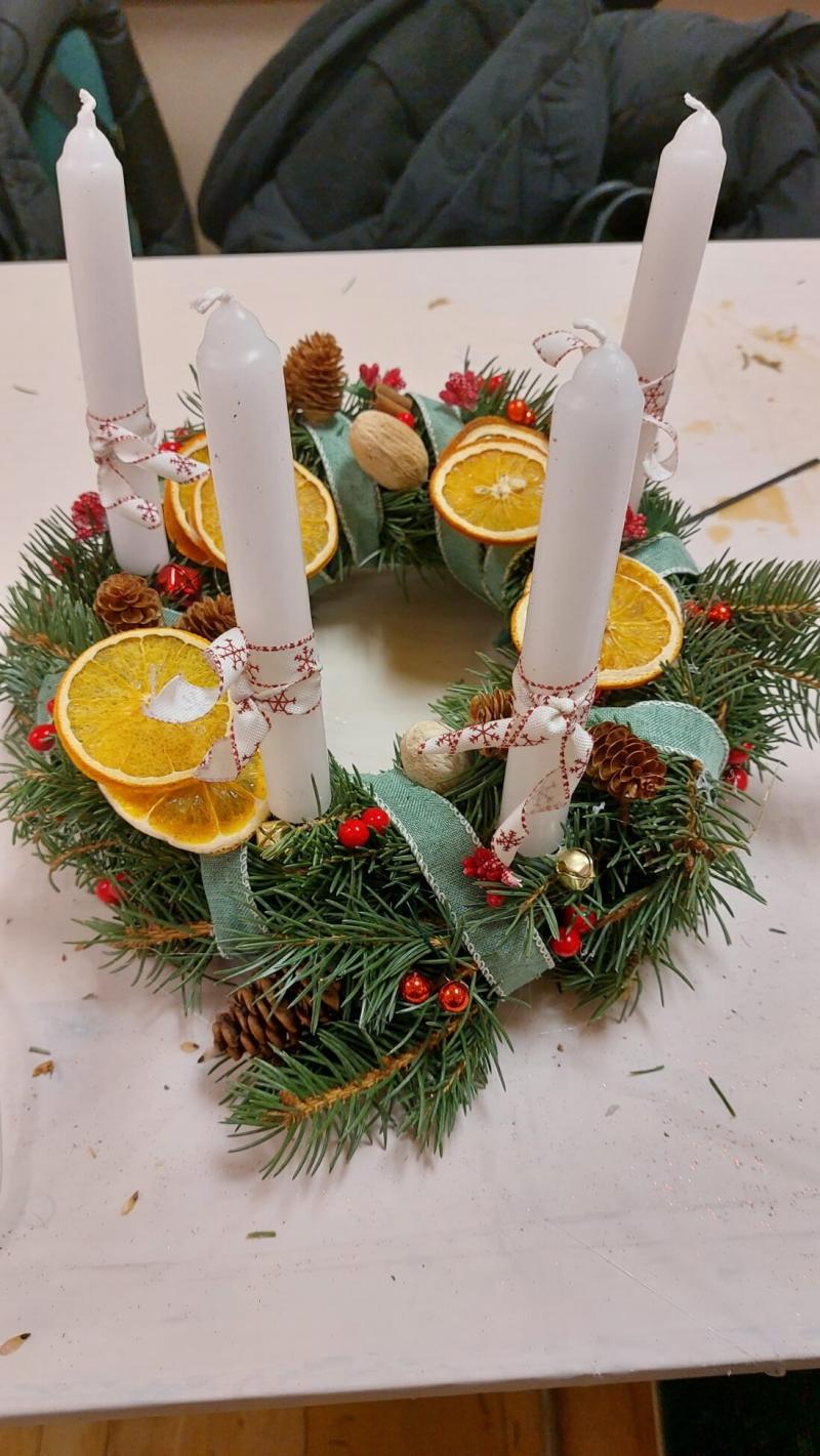A résztvevők megálmodták, majd elkészíthették saját adventi koszorújukat. A hagyományostól a modern stílusig készültek koszorúk egyedi változatokban. Sőt, volt aki gyönyörű ajtódíszt álmodott meg. A termet fenyőillat lepte el és szorgos kezek dolgoztak egész délután.