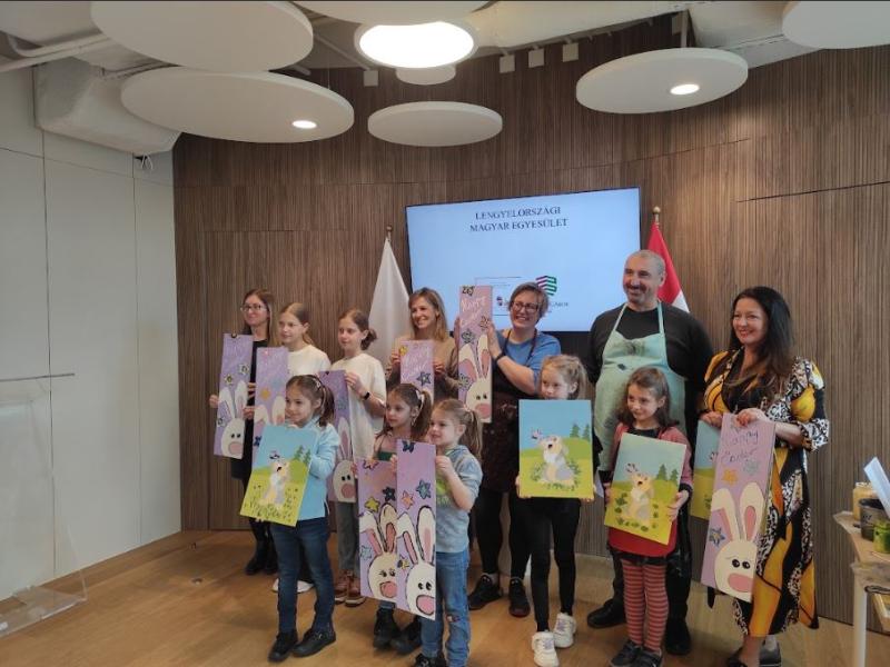 Először Gdansk városában, a főkonzulátus épületében került sor a foglalkozásra, másnap pedig már Varsóban készítették el a Divéky Adorján Hétvégi Magyar Iskola és Óvoda diákjai húsvéti nyuszis festményeiket.
