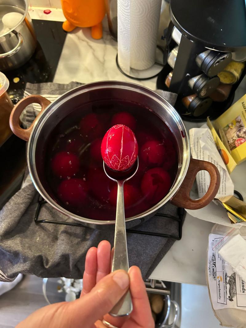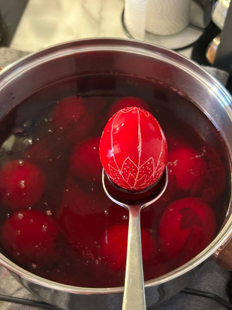 A húsvét egyik legszebb és legősibb magyar hagyománya a tojásfestés, azon belül is a különleges technikával készített írókás vagy viaszolt tojásírás. Svédországban Korpos Noémi, az egyik Halmstadi klubtag otthonában volt szerencsém találkozni így díszített tojásokkal. A technika lényege, hogy egy melegített, hegyes eszközzel (népi nevén íróka vagy kesice) forró méhviaszt visznek fel a tojás héjára.
