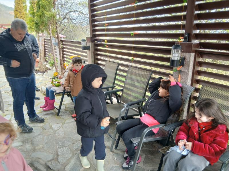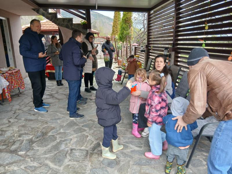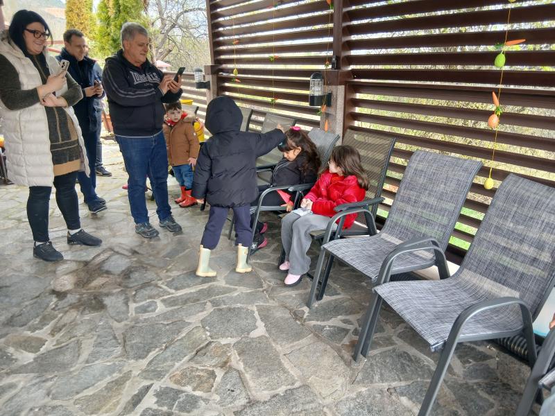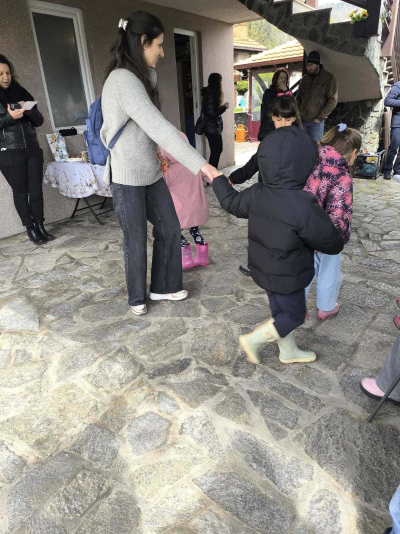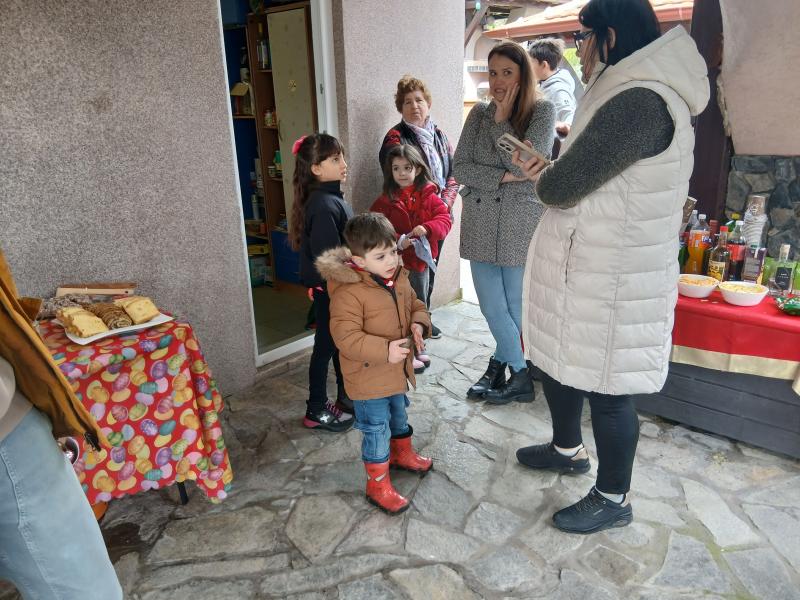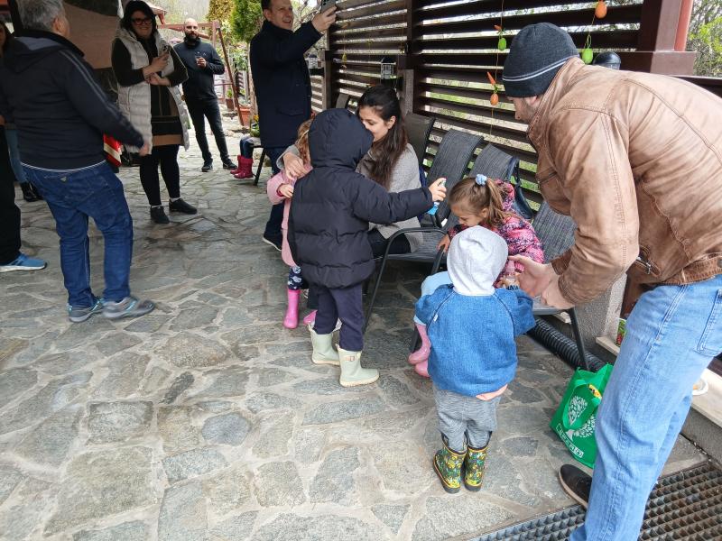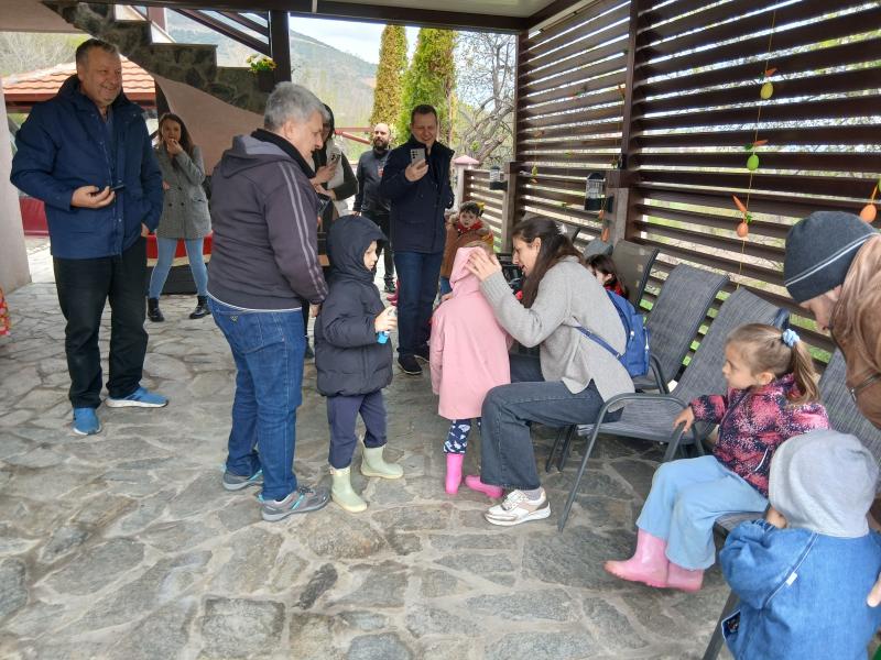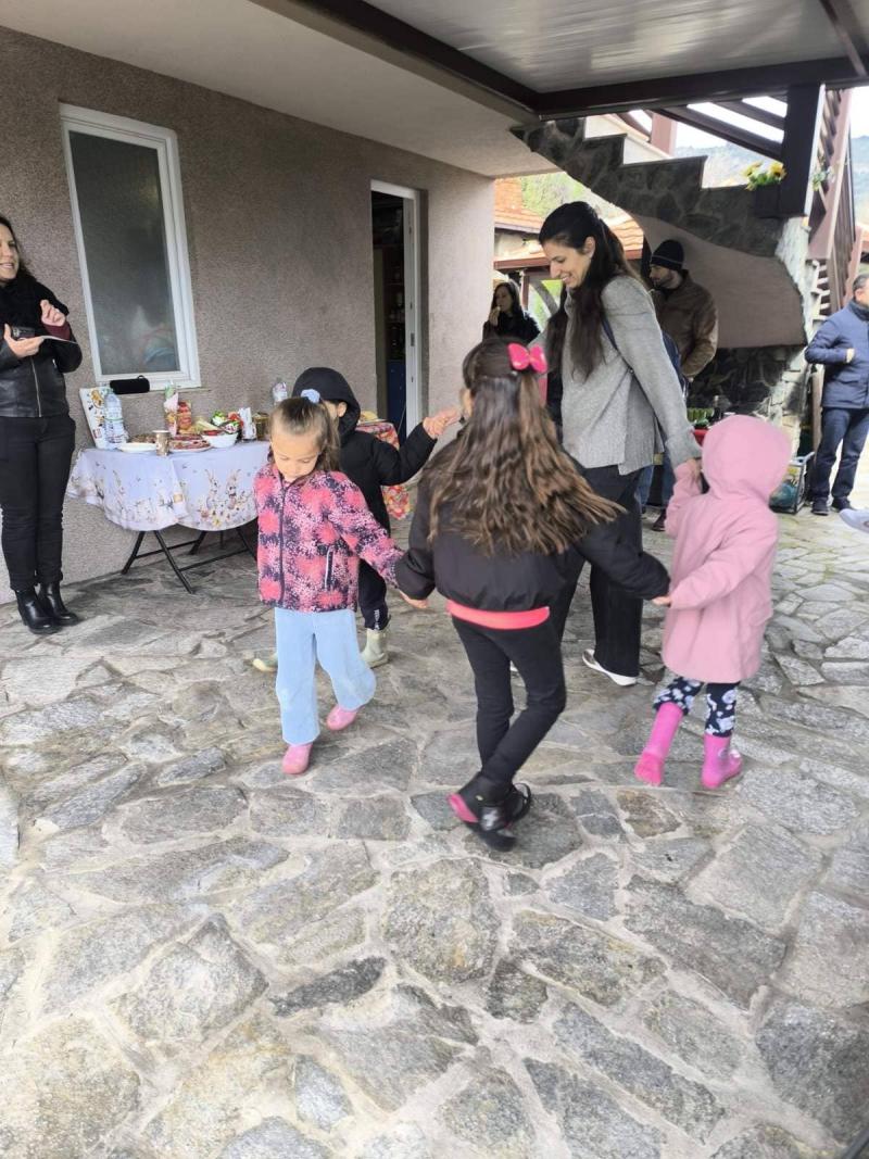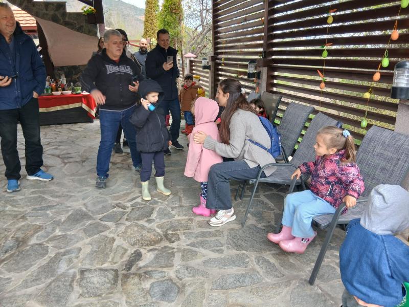 A Macedóniai Magyarok Teleház Szervezetének egyik tagja ajánlotta fel kertes házának udvarát a tojáskereséshez. A gyerekek ezután a locsolkodás szokásával is megismerkedtek, valamint a Lánc, lánc, eszterlánc és a Bújj, bújj zöld ág dalokra is táncoltak.