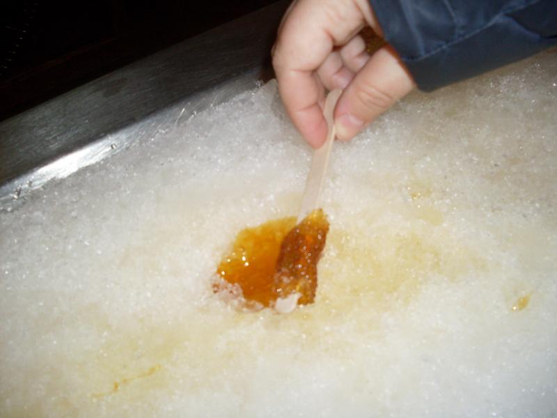 Minden hasonló turistacsalogató helyen saját kezűleg készíthető a juharszirup-nyalóka, és az étterem menüje is különleges: omlett, babfőzelék, sonka, kolbász, tepertő (ez itt Krisztus füle néven ismert) – mindez természetesen juharsziruppal nyakonöntve. Én nem, a desszert sem szűkölködik az édes nedűben!