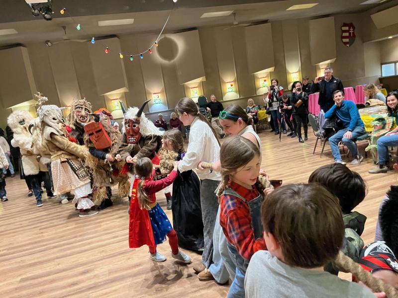 A gyermekes családoknak szánt farsangi mulatság és busójárás képei a Vancouveri Magyar Kulturális Egyesület rendezvényéről, a Magyar Házban.