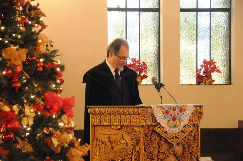 Az ünnepség Advent 3. vasárnapján istentisztelettel vette kezdetét. A vendégeket pompásan feldíszített templom fogadta az ablakokban mikulásvirágokkal, a szószék mellett több mint három méter magas fenyőfával. Az istentiszteleten főtiszteletű Szabó Sándor, az Ontariói Független Magyar Református Egyház lelkipásztora arról beszélt, hogy milyen fontos az ünnepek alatt is észben tartani az egyház tanait, hogy ebben a kaotikus időszakban is fordítsunk figyelmet Jézus ajándékaira. Az istentiszteletet a lelkes gyermekek és a felnőttek közös előadása követte. Felmerült, hogy a jövő évtől kezdve a műsor egyik része angol nyelven hangozzon, így több gyermek tud majd csatlakozni az előadáshoz. Az istentisztelet közös fényképezéssel zárult.