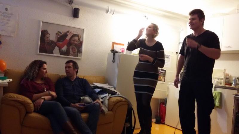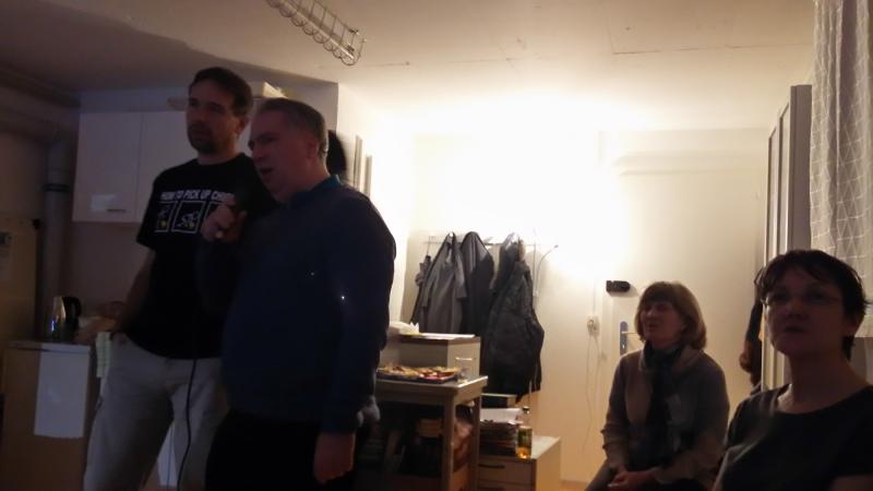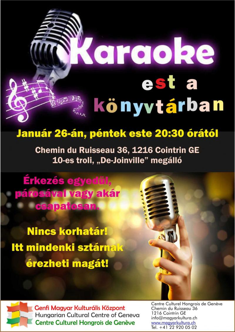 Január utolsó péntekén tartottuk a Genfi Kulturális Központ könyvtári helyiségében a Karaoke szériánk harmadik estjét. Fiatalok, csakúgy mint az idősebbek ragadták magukhoz a mikrofont és énekelték felváltva a magyar és külföldi slágerek legjavát. Az est közepén egy igazán fergeteges tehetséget sodort közénk a sors, akinek hangjától mindannyiunknak elállt a szava. Volt EDDA, Macskaduett, Beatles, Csinibaba, LGT, Green Day, Omega, Queen és minden, amit egy 16 000 számos listából választani lehet! Minőségi alkoholokkal és üdítőkkel fogadtuk az énekeseket, ami mellé zsíros kenyér volt a sörkorcsolya. Íme egy kis válogatás a hangulat legjavából: