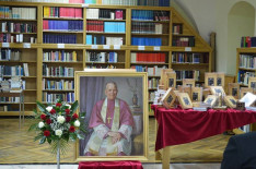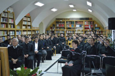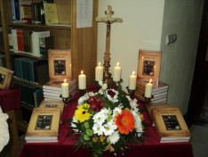 Október 24-én este a gyulafehérvári Hittudományi Főiskola és Papnevelő Intézet könyvtárában, az Erdélyi Magyar Egyházirodalmi Iskola szervezésében, az intézet csaknem valamennyi hallgatója jelenlétében Vencser László tanár úrral bemutattuk dr. Jakab Antal püspök szentbeszédeinek általunk szerkesztett és az Új Misszió Alapítvány gondozásában idén nyáron megjelent gyűjteményét. Támogatók jóvoltából – az est meglepetéseként – meg is ajándékoztuk a kétkötetes kiadvánnyal a kispapokat. Másnap reggel a székesegyház kriptájában felkerestük Jakab püspök nyughelyét és sírja előtt elhelyeztük a kegyelet koszorúit. A jelzettek kivételével a Seminarium Incarnatae Sapientiae képsorozata
