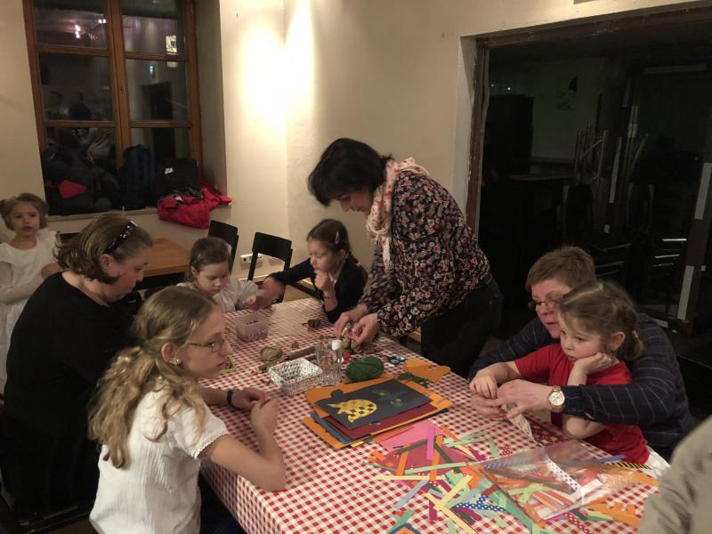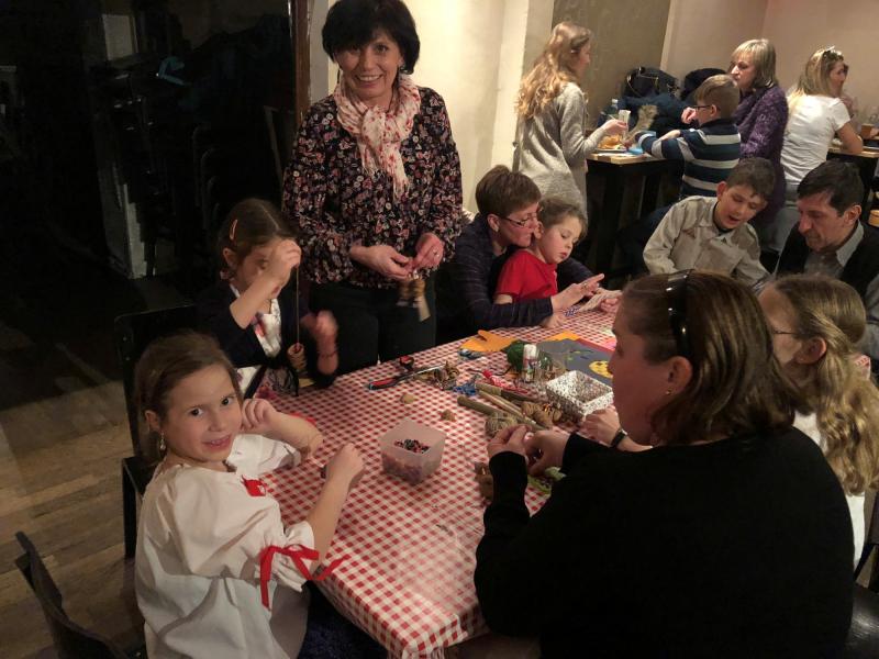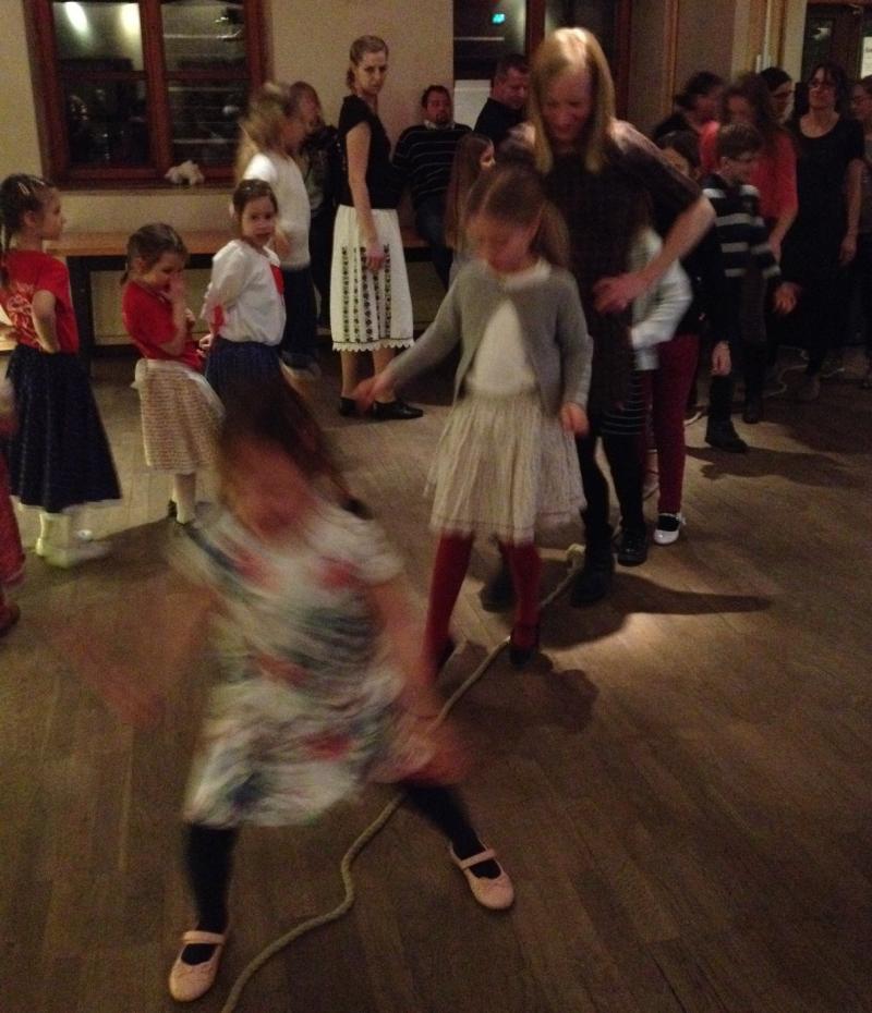 Február végén Patai Bori KCSP ösztöndíjas társam meghívására Münchenben jártam a Regös-táncházban, hogy a legkisebbeknek (4-12 éves korúaknak) kézműves foglalkozást tartsak. A felkérésnek szívesen tettem eleget, hiszen Regensburgban (Regensburgi Konzuli Magyar Iskola, Regensburg-Ost) is már sikerrel és lelkesedéssel barkácsoltunk a gyerekekkel. Szép számú magyar család érkezett, elsőként a gyerekesek, a program ugyanis gyermektáncházzal indult, de később a terem megtelt a táncos lábú felnőttekkel. Öröm volt nézni a sok kis pörgős szoknyás lánykát és fehér inges fiúcskát, ahogy a már ismerős lépéseket járták, énekeltek és körjátékokat játszottak. Amint a tánc befejeződött, kezdődhetett a kézművesség. Két tevékenységgel készültem: papírszövéssel és diócsörgő-készítéssel. A legkisebbek csak gyöngyöt fűztek, de láthatóan ez is nagy elégedettséggel töltötte el őket. Érdekes, hogy a papírszövés kicsit nehezen ment eleinte (talán nem gyakorolták ezt a technikát még a gyerekek), de a szülők aktív közreműködésével nagyon szép művek születtek. Megható volt a gyerekek azonnali bizalma irányomban, cserfesek, vidámak és érdeklődőek voltak. Míg mi a kézműves asztalnál ügyeskedtünk, elkezdődött a felnőttek tánctanulása és szabad tánca, melyhez remek muzsikusok húzták a talpalávalót. A gyerekek körülöttem énekelték és dúdolták az ismerős dalokat. Öröm volt hallgatni!