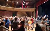 Marchant Katalin, a Genfi Magyar Kulturális Központ egyik vezetőségi tagjának szervezésében a Téka tábor neves tanárai jöttek a genfi Rudolf Steiner Iskola 7. osztályába magyar néptáncot és népi hagyományőrző muzsikát tanítani. Tudni kell az iskoláról, hogy minden 7. osztályos évfolyam számára fenntart egy hetet a tanítási időből, amikor a gyerekek egy intenzív interaktív táboron keresztül tekinthetnek be más kultúrák sajátosságaiba. A Téka tábor vezetői és az őket kísérő békés megyei "Suttyomba" zenekar hétfőtől péntekig, megállás nélkül magyar népdalokat és néptáncokat oktatott a hihetetlenül fogékony és tehetséges "Steineres" diákoknak. Április 28-án, péntek este 20:00 órától várta az osztály a közönséget néptánc és népzenei bemutatójára, 21:30-tól pedig egy fergeteges táncházra invitálták a bátor táncos lábúakat. Aki szeretett volna, már a fellépés előtt, 19:00 órától belekóstolhatott a magyar konyha ízeibe, az osztályba járó gyerekek szorgos szüleinek köszönhetően. Az előadás részeként láthattunk kalocsai táncokat, óriási meglepetésünkre a gyerekek elciterázták a Bartók Béla által Békés vármegyében gyűjtött "Láttál-e már valaha" kezdetű népdalt, a "Hej, Jancsika, Jancsikát" és a "Gólya, gólya gilicét". A "Pásztorok, keljünk fel" című ismert gyermekdalt furulyán adták elő, végül pedig valóságos zenekarként játszották el az "Ez a kislány, barna kislány, sej-haj de kisírta a szemét". A tanárok és a diákok, ez alatt a pár nap alatt, hihetetlenül nehéz darabokat fűztek össze egy csodásan gazdag egésszé, mely mindannyiuk kiváló tehetségét bizonyítja. Hálásak vagyunk a program ötletéért és a fantasztikus kivitelezésért! Minden résztvevőnek szívből gratulálhatunk!