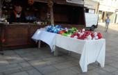 A piac nem volt nagy, viszont annál színesebb. A látogatókat mi más várta volna a faházsor elején, mint az elmaradhatatlan kürtőskalács és lángos. A Magyarországot nem ismerő látogatók igazi magyar vásárhangulattal szembesülhettek, hiszen minden volt, amiről a magyarok tudják, hogy elmaradhatatlan az ünnepi piacokon. A kézzel készült színes kosarak árusa, a pöttyös edényeket áruló fazekas, a gyerekeket a fa hintalovacskával csalogató fafaragó és az amellett álló kézműves szappan csak a kezdete volt a csodának. Az arra tévedő vendégek egyéni mézecskalács szívecskéket vihettek haza saját maguknak, vagy feliratoztathatták szeretteiknek ott helyben. Arról nem is beszélve, hogy a vöröspaprikafűzérekkel díszített hentesházban mindenki megízlelhette Magyarország legjavát a kolbásztól a szalonnán át egészen a csülökig. A közelgő télre való tekintettel pedig finom szőrméket, bőrkesztyűt, sapkákat vásárolhattak a következő helyre tovább-ballagva. De ne feledkezzünk meg a hazai, termelői mézet áruló bódéról sem, ahol lehetőség volt megkóstolni minden mézfajtát, hogy utána azt választhassuk a többtucat csupor közül, ami valóban nekünk való.