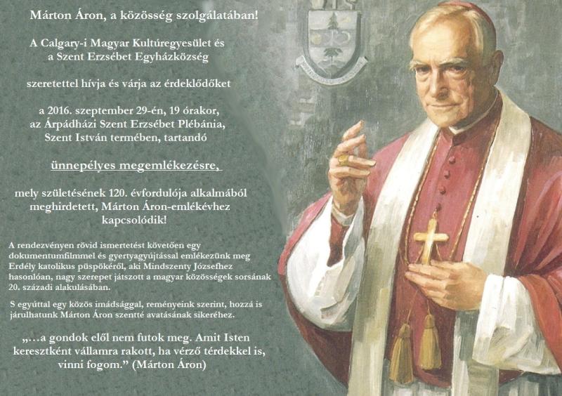 A Nemzetpolitikai Államtitkárság által, Márton Áron születésének 120. évfordulója alkalmából meghirdetett emlékévhez kapcsolódóan, két programot is szerveztünk szeptemberben Calgaryban. Márton Áron Calgary