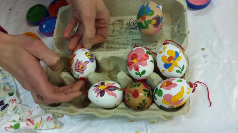 Tóthné Margó látogatott el múlt szerdán a Genfi Magyar Iskola és Óvodába egy húsvéti előkészítő foglalkozásra. Matyó hímzéses tojásfestést tanulhattunk tőle, így már biztosan mindenkinek idejében készen lesznek a locsolókat váró ajándékai.