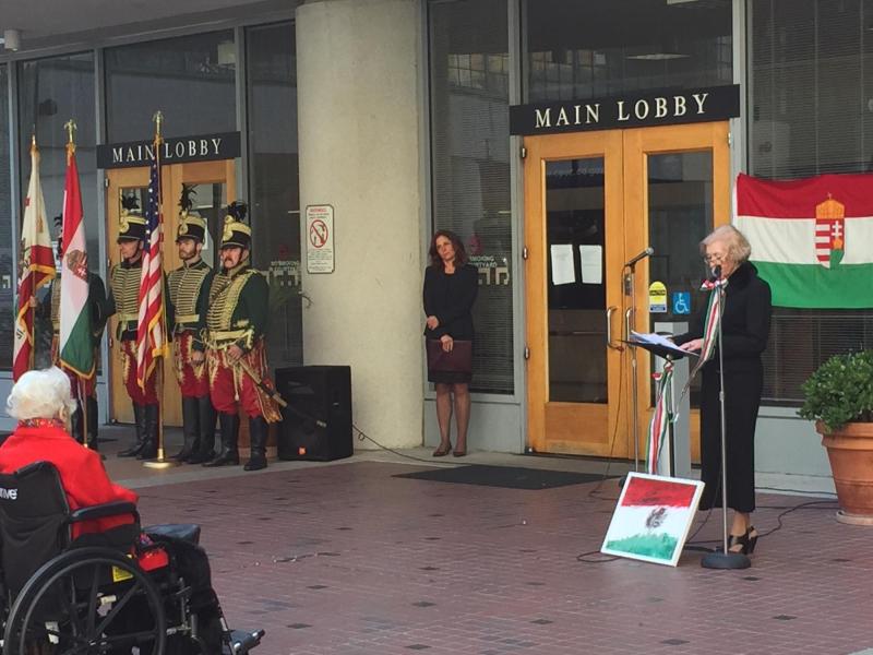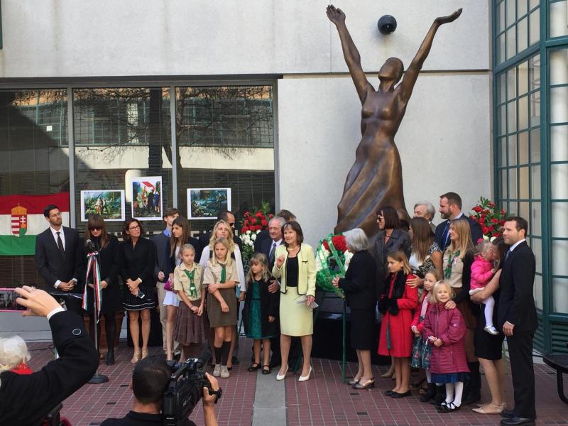 A szobor harminc évvel ezelőtt a Jackovics valamint a Szabó család jóvoltából készülhetett el, akik szintén részt vettek az ünnepségen, hiszen idén nekik és a The Hungary Initiatives Foundationnek köszönhetően újraöntötték a Gloria Victis szobrot. Meghatódva emlékezett vissza 1956-ra a már az Egyesült Államokban született Magyary Ilona is, akinek nagyszülei a századfordulón emigráltak Amerikába. Arról beszélt, mennyire szomorú még most is visszaemlékeznie, hogy bár Magyarország akkor segítséget kért, az Amerikai Egyesült Államok mégsem tett semmit, és az itt élő magyarok is tehetetlenek voltak.