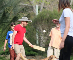 Az Montevideohoz közeli Sierra de las Animas-ra kirándult az egyik legaktívabban működő uruguay-i nyelvi csoport 2016 november 19-én. A délelőtti kirándulást követően az egyik tanuló házába utazott vissza a csapat, hogy kipihenjük a túra okozta fáradalmakat. Pihenni azonban aligha lehetett, mivel Zsuzsával - az ösztöndíjas kollegával - bejelentettük, hogy métázni fogunk. Természetesen senkinek sem volt ellenvetése. Szerencsére a házhoz tartozó terület nagysága lehetővé tette, hogy kényelmesen tudjon métázni rajta a két, 8 főből álló csapat. Ismertettem a szabályokat, majd a szemléletesség kedvéért egy próbakört játszottunk. Hamar elsajátították a tudnivalókat, majd kezdetét vette a mérközés, ahol mindenki önfeledten küzdött, hogy előbb érje el a kitűzött pontszámot.