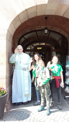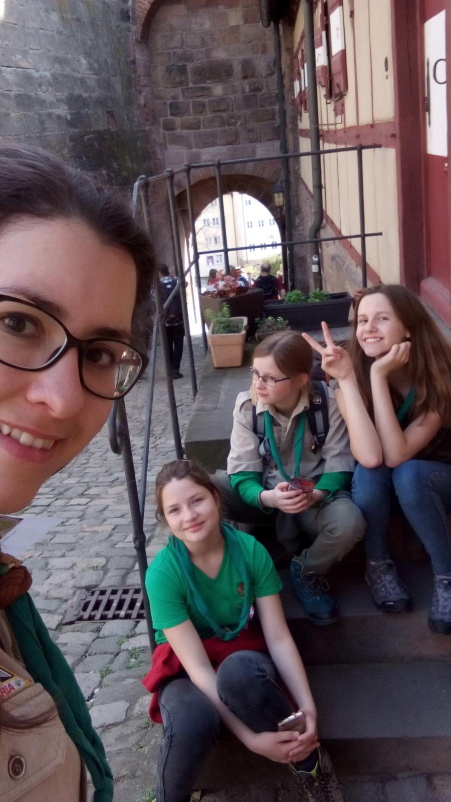 6:45-kor volt a találkozó a müncheni főpályaudvaron. Január vége óta én viszem a Róka őrsöt (12-13 éves lányok), én őket gyűjtöttem össze az induláshoz. A vonatút alatt többen elaludtak, de frissen érkeztünk. Tihanyi Endre, a Nürnbergiek csapatparancsnoka várt minket a város pályaudvarán. Ő kísért el minket a cserkészotthonba, ahol Gergő fogadott minket. A cuccainkat lepakolva, pihenhettünk kicsit, hiszen a stuttgarti csapatot még be kellett várni. Ezalatt megnézhettük a csapatotthont. Számomra derítő volt, hogy ezen a házon a magyarok a lengyelekkel osztoznak. Szimbolikusnak találom a lengyel-magyar barátság miatt. A lengyel részen egy egész falon Szent II. János Pál pápa képei voltak kirakva, ami külön megható volt. 11 körül indulhatott a verseny. Gergő elmondott minden szabályt és útnak eresztette az őrsöket. Én a „lányaimmal” indultam útnak. Érdekes volt felfedezni a sok-sok magyar emléket: Ajtósi Dürer szülővárosa ez, uralkodott itt Luxemburgi Zsigmond, magyar király, Német-Római császár, a hajdúk hajtottak ide a Hortobágyról szürkemarhákat és ezt egy viszonylag jelentős szobor meg is örökíti.