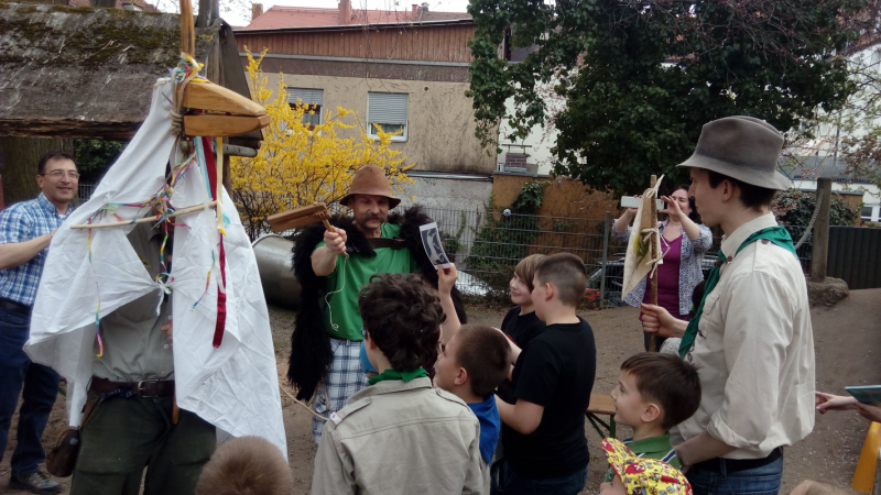 15:30-ra kellett visszatérni a csapatotthonba, ahol meleg ebéddel vártak minket. Leadtuk a kitöltött feladatlapot és pluszpontért a magyar emlékekről összegyűjtött fényképeket is megmutattuk. A délután további részében pedig az eredményhirdetésre került sor. A RÓKA őrs különdíjas lett a sok magyar vonatkozású összegyűjtött kép, egyéb információk kiderítése miatt, de az első helyet is müncheni őrs vehette át. Ezután Tóth-Pál Zoltán, a nürnbergi ösztöndíjas, kecskés alakoskodásával vidította a fiatalokat és vitt színt a délutáni programba. Végül fél 6 körül búcsút vettünk a nürnbergiektől és indultunk a pályaudvarra. A vonaton még jókat nevetgéltünk, de 8 órára befutott a vonat és átadtuk a kicsiket a szülőknek, valamint mi, vezetők, is indultunk a szélrózsa minden irányába. Nagyon szép tavaszi élmény volt ez mindannyiunk számára.