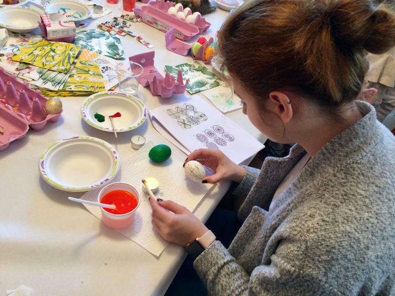 A FO NO első alkalommal március 29-én, nagycsütörtökön délután fél háromkor vette kezdetét hagyományőrző tojásfestéssel a norvég külképviseleten. A gyerkőcöknek és felnőtteknek lehetőségük nyílt három tojásdíszítő technikát kipróbálni, így a tradicionális írókázott hímestojásokon kívül készültek szalvétatechnikával díszített és márványozott mintájú remekművek egyaránt. A szebbnél szebb alkotások készítését tojásos nokedli és fejes saláta követte. Két óra alatt mind a százhúsz tojás díszbe öltözött és elégedetten távoztak a vendégek, kezükben a locsolóknak szánt ajándékokkal.