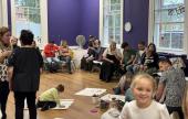 A mesefoglalkozás végeztével a gyerekek saját papucsot készíthettek, melyet emlékül haza is vittek.