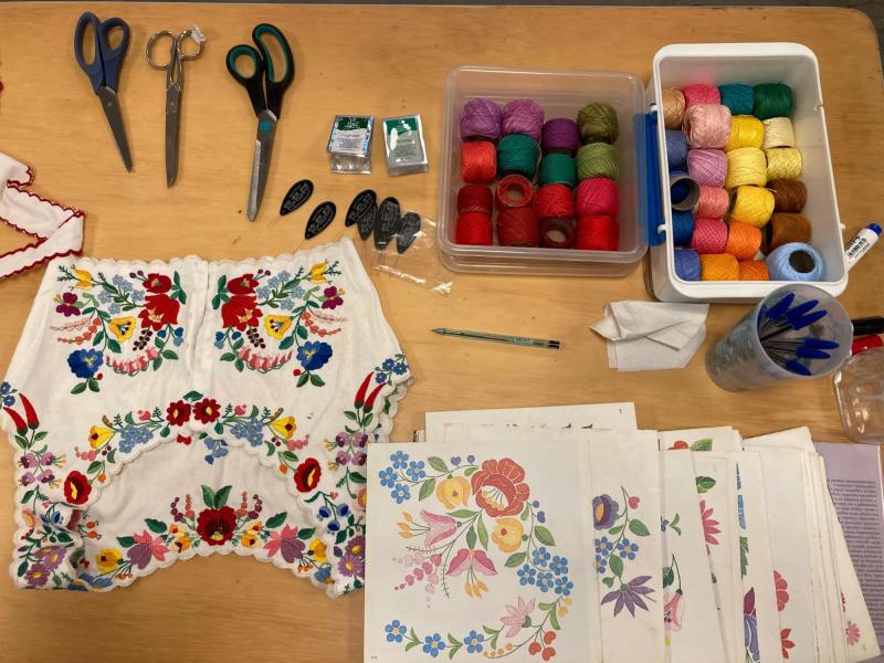 Azonnal belevágtunk a szervezésbe. Felvettem a kapcsolatot Kokron Ilonával, aki nemcsak a közösség egyik motorja, de a hímzés mestere is. Úgy döntöttünk, elsőként egy ismerős, kedvelt motívumvilágot választunk: kalocsai mintákkal készülünk a résztvevőknek.