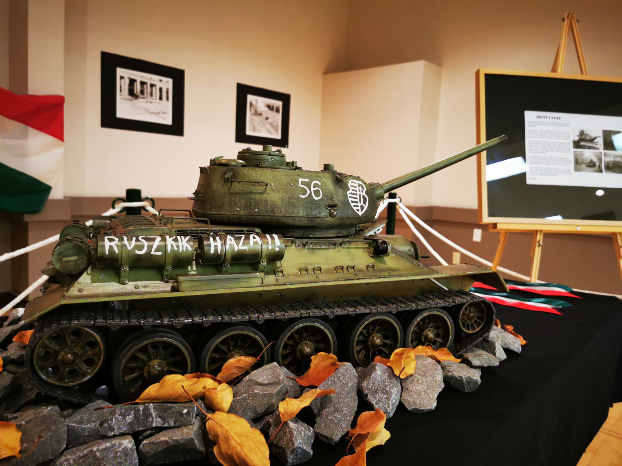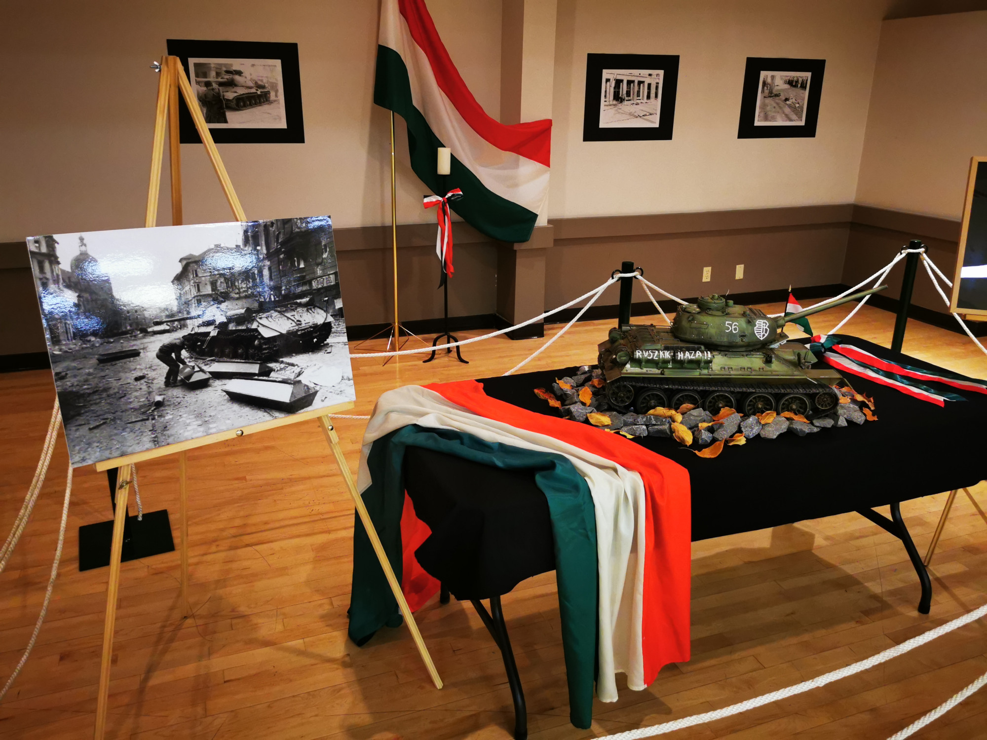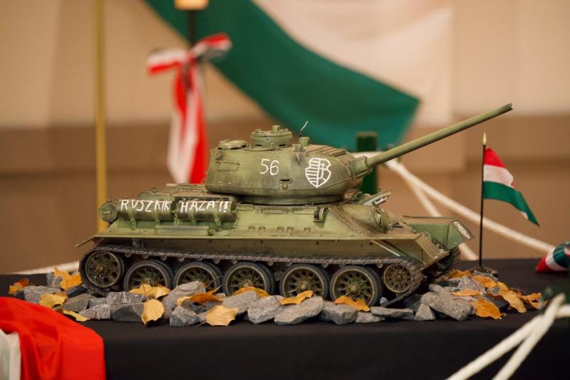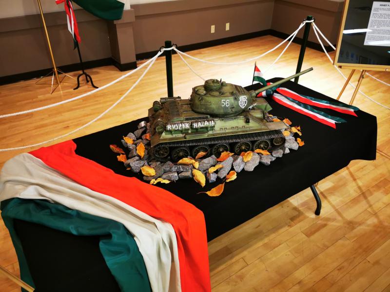 Ünnepélyünk részeként felállítottunk egy kiállítást is, amelynek központi darabja Kiss Béla által készített valósághű '56-os tankmakett volt. Miközben készítettem a tárlatot, elcsodálkoztam, mennyire élethű. Hasonlóképpen volt ez a vendégekkel is. Ráadásul a makett működőképes, mozog, füstöl és lőni is tud, így a gyerekeket is elkápráztatta.