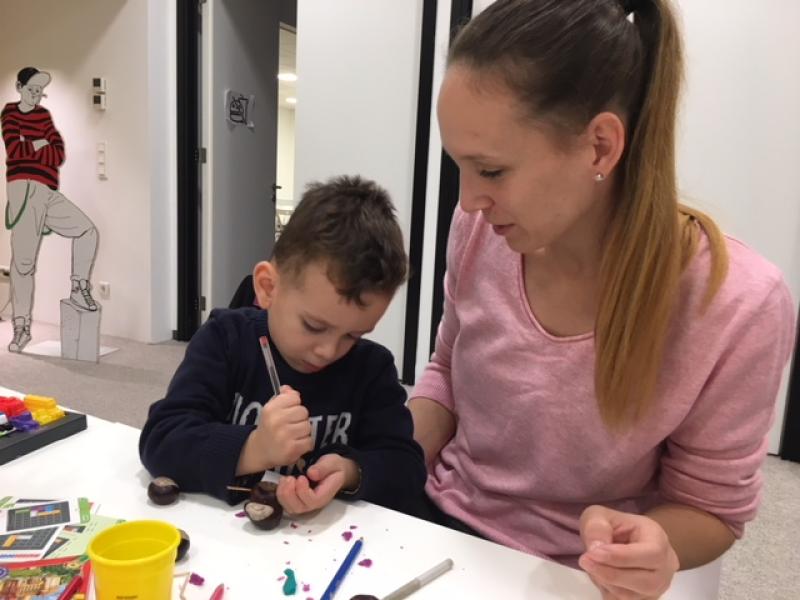 Az október 13-ai óvodás foglalkozáson az ősz, az őszi termések és állatok voltak előtérben. Ehhez kapcsolódóan énekeltünk, mondókáztunk, verset tanultunk. Az alkotásainkból rögtönzött kiállítást is tartottunk.