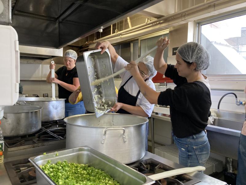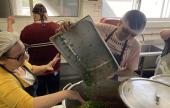 A csapat gyorsan felosztotta a feladatokat – volt, aki hagymát aprított, mások a húst készítették elő, és akadt, aki a főzőcsapatot kávéval látta el. A sok szorgos kéznek köszönhetően a munka gördülékenyen haladt, és kora délutánra el is készült a finom étel. Az előző napi jókedvű sürgés-forgás után vasárnap már mindenki együtt fogyaszthatta el a közösen főzött székelykáposztát, amely nagy sikert aratott.