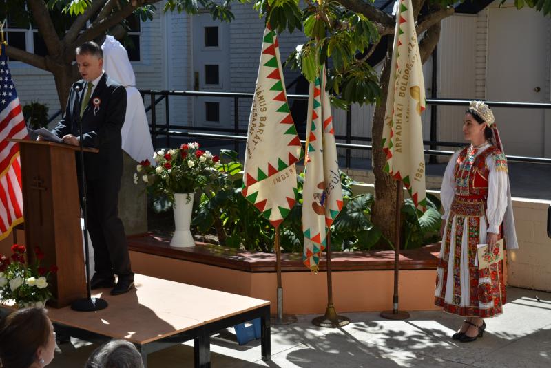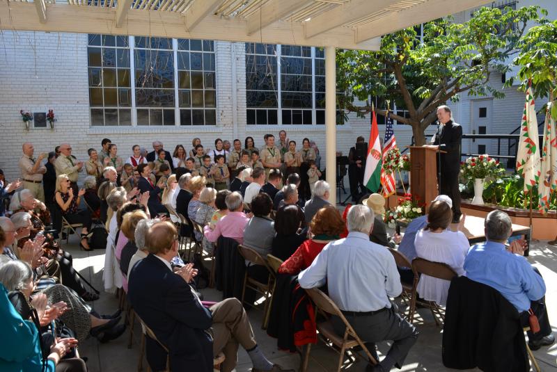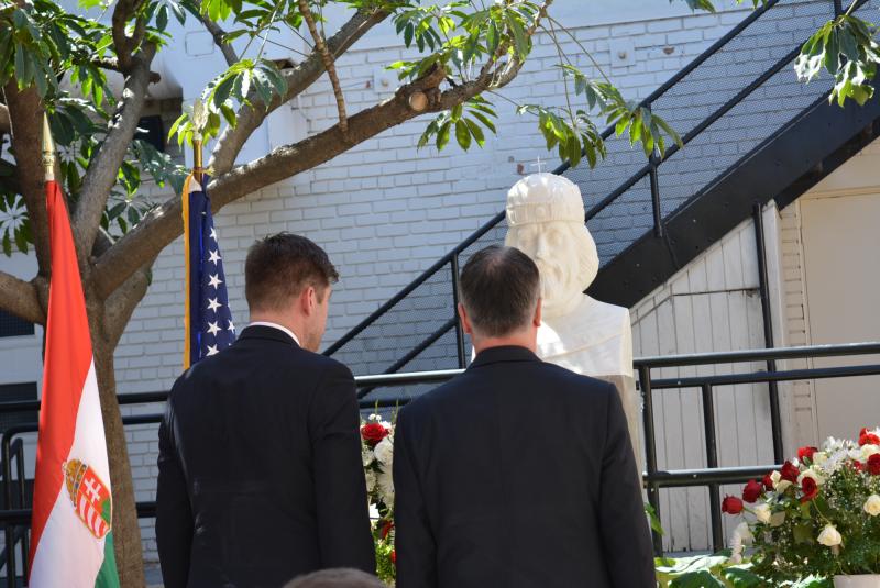 Vasárnap felavatták Szent István király mellszobrát a Szent István Római Katolikus Templom udvarán. Váró Márton Irvine-ban élő szobrász alkotása carrarai márványból készült, költségeit a főkonzulátus közbenjárására a Miniszterelnökség Nemzetpolitikai Államtitkársága biztosította. Szilágyi Péter, az államtitkárság miniszteri biztosa, mondott beszédet az ünnepségen, majd Vodnák Nándor, illetve Latkóczy László társaságában, akik a Szent István Egyesület vezetői, adta át a mellszobrot. Az eseményen több mint kétszázan vettek részt.