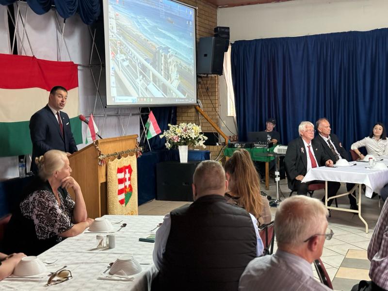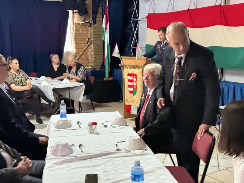 A Dél-afrikai Magyar Szövetség hagyományos, ebéddel egybekötött megemlékezését idén nemzeti ünnepünk pontos naptári napján, március 15-én, szombaton tartotta a Johannesburg határában fekvő Magyar Tanyán. A rendezvényt megtisztelte jelenlétével a munkatársai kíséretében érkező Horváth Attila, Magyarország pretoriai nagykövete is.