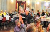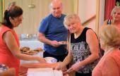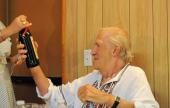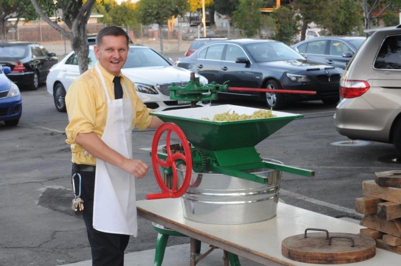 Az Ontarioi Magyar Református Egyház őszi programjainak kezdetét jelzi minden évben a szüreti mulatság. A San Bernardino megyében élő magyarság tagjai közül a rendezvényen majd százan vettek részt. A termésért való hálaadási ünnepségen főként magyarok voltak, de szép számmal jelentek meg amerikai családtagok, ismerősök is. Köszöntőjében főtiszteletű Szabó Sándor, az Amerikai Magyar Református Egyház tiszteletbeli püspöke, a gyülekezet lelkipásztora emlékeztetett a tradíciók ápolásának fontosságára. A hagyományok őrzését már a bejárat előtt felállított szőlőprés és öt láda szőlő jelezte. Az este folyamán a szőlőből kipréseltük a mustot, amit a vendégek mind el is vittek magukkal. A szüreti mulatság jó hangulata és a friss must zamata mellé az ételeket az Ontario-i Egyház Nőegyletének tagjai készítették, Jankovits Mária presbiter vezetésével. Szép példája ez a közösség összetartó erejének. A stílusos és hangulatos programról a Magyarországról érkezett Dömsödi Farkas Bálint énekes gondoskodott, aki dalaival egész este táncoltatta a vendégeket. A vidám és a felszabadul hangulatú rendezvényen a jórészt nyugdíjas korú vendégek meglepő kitartással ropták a táncot. A hangulat egész esete nagyszerű volt. Több mint 9000 kilométerre a Magyarországtól, ha nem állnak pálmafák az ablak alatt, meg sem lehetett volna mondani, hogy nem a Kárpát-medencében vagyunk. Az igazán kitartóak hajnali egyig maradtak.