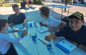 A tábor első napján Baksza Titanilla pszichológus vezetett foglalkozásokat a gyermekeknek. Játszottunk és ismerkedtünk, ismerkedve játszottunk. Neveket tanultunk játékos formában, megkerestük mi a közös bennünk, mesét olvastunk és utána agyagból formáztunk meg valamit a meséhez kapcsolódóan, majd közösen társasoztunk. Délben kiváló gulyáslevest ettünk ebédre, este pedig lángost vacsoráztunk, amit a közös mozizás követett.