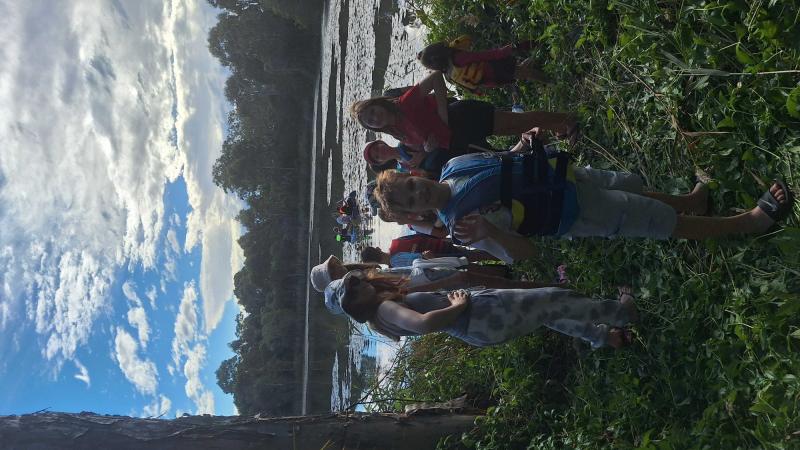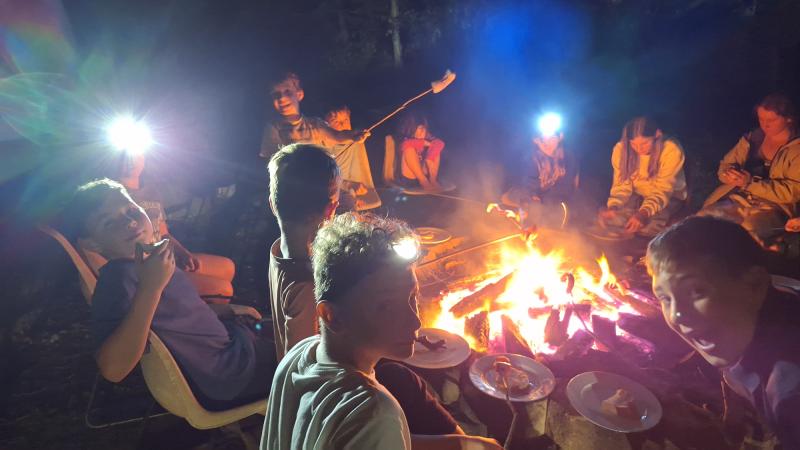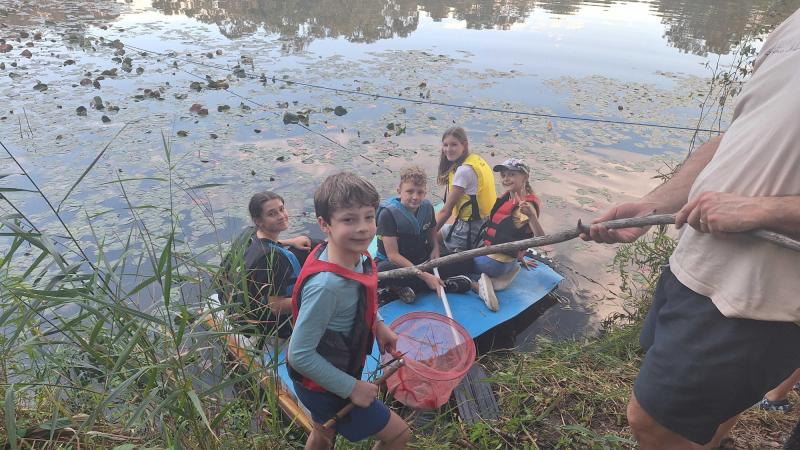 Az ébresztő után közös reggeli tornával indítottuk a napot, majd egy jót reggeliztünk. Választhattunk virsli, szendvics és tejbegríz közül is. Három literes tejes dobozokat összebarkácsolva tutajt készített a csoport egyik fele, a többiekkel pedig fonalból barátság karkötőket fontunk. Ebédre milánói sertésbordát ettünk, majd kipróbáltuk a tutajt a közeli tavon. A gyerekek jó munkát végeztek, mindenki átjutott a túlpartra, ahol játszótér és az uzsonna várt minket. Vacsorára szalonnát sütöttünk és természetesen mályvacukrot is desszertnek. Végül jöhetett a bújócska-fogócska sötétben, elemlámpákkal.