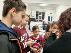 A felnőttek sem maradtak program nélkül: amíg a kisebbek a könyvtárból való kiutat keresték, addig a nagyobbak társasjátékoztak, beszélgettek, teáztak és egy kis harapnivaló is akadt, hogy jobban menjen a játék.