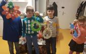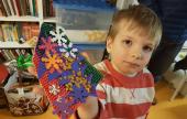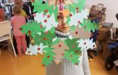 Koncsek Gabriella téli kézműves foglalkozás kezdeményezését ismét nagy érdeklődés fogadta: nyolc kisgyerek jött el a szombat reggel. Téli ajtódíszek változatos fajtáit készíthették el a gyerekek, levelek, fenyőfa, kesztyű forma, színes papír vagy éppen koszorú segítségével. Mindenkinek a saját kreativitásától függött, milyen kiegészítőkkel dolgozott a hozott formanyomtatványok, szalagok, mintanyomók közül. Ezek a szépségek születtek: