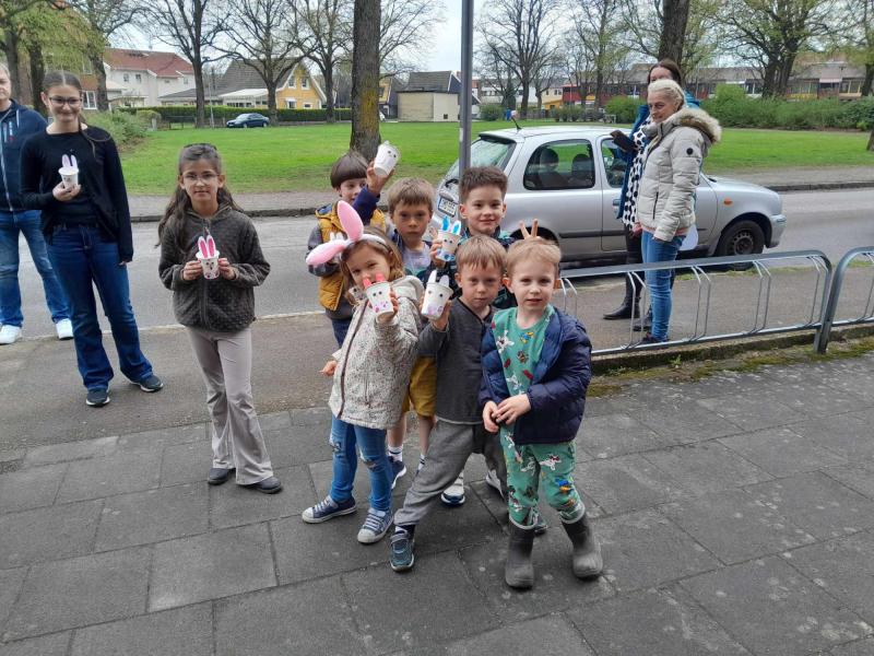 A halmstadi magyar gyerekek idén egy izgalmas és mozgalmas húsvéti foglalkozáson vehettek részt: A program elején a fiúk locsolóverset tanultak, a lányok pedig húsvéti mondókákat és énekeket. Ezek után mindenki készített magának egy húsvéti tojásgyűjtő poharat, amibe később a csokitojásokat gyűjthették.