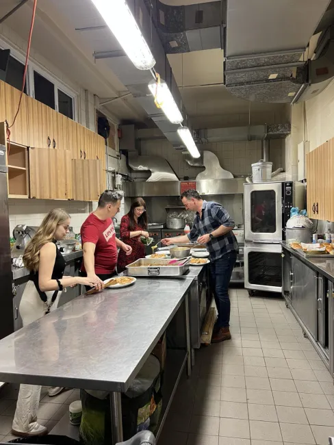 A vacsorát egy helyi magyar család készítette el, és nagy örömmel tölt el minket, hogy mi is segíthettünk a munkafolyamatokban. Az étel a magyar konyha ízeit hozta el Montreálba, és minden falat maga volt a családias hangulat, a tradíciók és a szeretet. Az étkezés nemcsak gasztronómiai élményt jelentett, hanem egy igazi közösségi eseményt is, ahol mindenki szívesen megosztotta véleményét az ízekről és a tapasztalatokról.