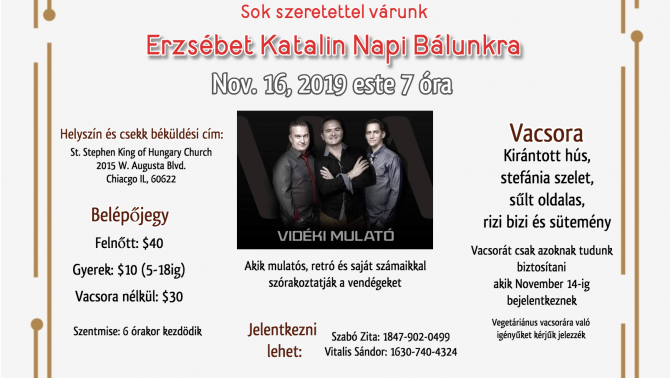 2019. november 16-án tartották meg az Erzsébet és Katalin napi bált Chicagóban, a Szent István Király Templom…