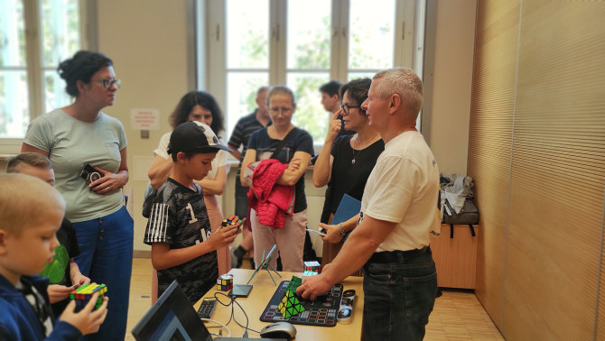 2024. szeptember 21-én, szombaton Kocza István, magyar speedcubing bajnok, Rubik-kocka bemutatót tartott a Varsói…