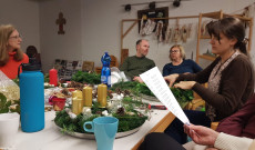 2024. november 30-án adventi hangulat töltötte meg a stuttgarti Katolikus Misszió alagsori termét. Az ajtón belépőket fenyőillat, karácsonyi zenék, képek és finom falatok, valamint a már az adventi koszorúk készítéséhez berendezett asztalok és eszközök fogadták.