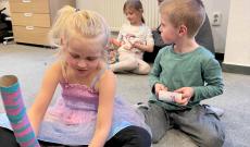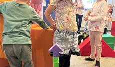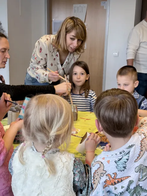 A program középpontjába a „torony” motívuma került – nem véletlenül. Ez a téma szinte kimeríthetetlen lehetőségeket rejt a legkisebbek számára: játékos, kreatív, és azonnal bevonja őket. A foglalkozás már a legelején alkotással indult: a gyerekek közösen festettek és díszítettek újrahasznosított papírgurigákat, amelyekből később saját tornyaik épülhettek fel. Rögtön elmélyültek a tevékenységben, szebbnél szebb színes építőelemek kerültek ki gondos kezeik közül.