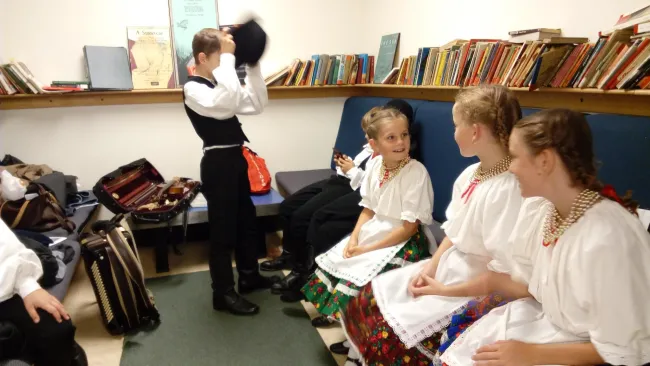 Izgatott szülők gyülekeznek a nézőtéren, izgő-mozgó gyerekek készülődnek lelkesen a színfalak mögött - viseletbe bújnak, a lányok hajat fonnak, a fiúk hegykén felcsapják a kalapjukat; alighanem avatatlan szemek számára is világos, hogy néptánc fellépés készül. Nem is akármilyen!