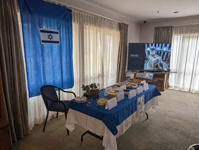 Beszélgettünk a népcsoport szokásairól, a zsidó vallásról, és annak rituális elemeiről. A modern társadalomban a fogyasztást is a kulturális sokszínűség hatja át, így élményutazásunkat fokoztuk gasztronómiai élvezetekkel. Kipróbáltuk a tradicionális fűszereket, és néhány mártogatós ételt, mint a humusz, tojáskrém pitával. Desszertként megkóstoltuk a Hámán fülét, melyet különleges datolya dzsemmel töltöttek meg.