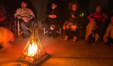 A tűz meggyújtása közben az összegyűlt cserkészek együtt énekelték a “Megrakják a tüzet” kezdetű népdalt, melyet Bartha Gábor előadásában, Reményik Sándor Nagy Magyar télben c. verse követett. A vers utáni elmélyülésben Gruber Tibor feltette a kérdést, hogy kinek mit jelent a cserkészet, melyet egy-egy szóban válaszoltak meg a tűz körül ülő emberek. Ezután Kovássy Éva vezetésével különböző tájegységek népdalait énekeltük, gondolatban ezzel bejárva Magyarország és Erdély különböző vidékeit. Az összegyűlt csapattal még új népdalt is tanultunk.