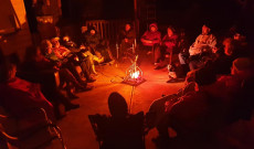 A tűz köré állva ezután mindenki mécsest kapott a kezébe, így mondtunk együtt imát, majd szeretetkört alkotva egy utolsó énekkel búcsúztunk el a szolidaritás lángjától. Az este kellemes beszélgetéssel fejeződött be a házban pálinkával, és a vacsora után egy kis finom madártejjel.