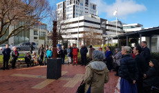 A megemlékezés szombat délben kezdődött a Magyar Millennium Parkban, amit az itteni magyarok hoztak létre a néhai tiszteletbeli főkonzul, Szentirmay Pál kezdeményezésére 2003-ban. Az elmúlt két nap esős-szeles időjárása után a Jóisten kegyeibe fogadott minket, szépen kisütött a nap, tiszta időben kezdődhetett a megemlékezés – mintha ezzel is nekünk akarna üzenni ezen a napon. Nagyjából negyvenen lehettünk a parkban, sokan kokárdát tűztek, ezzel is kiemelve az esemény jelentőségét. A Trust elnöke, Szentirmay Klára köszöntötte az egybegyűlteket, méltatta a parkot és az összegyűlt közösséget, majd közösen elénekeltük a himnuszt. Ezt követően ünnepélyes koszorúzásra került sor: előbb a nagykövetség nevében az első beosztott Fazekas Béla, majd az új-zélandi magyarok, azaz a Magyar Millennium Park Trust nevében egy aucklandi magyar kislány, Lipóth Réka helyezett el koszorút a parkban álló kopjafa tövében. Zárásul az aucklandi KCSP-ösztöndíjasok, Dóri és Marci a szatmári táncból tartottak rövid bemutatót, mely verbunkból, lassú és friss csárdás tételekből állt össze. Sok arra járó megállt, mosolyogva nézte a rendezvényt, többen fényképeztek. A félórás műsort követően fölszálltunk a Magyar Millennium Park által odarendelt buszra és elindultunk az Anzil étterembe. Útközben vidáman beszélgettünk, miközben Klári frissen sült pogácsáit tartalmazó kosárka ismét körbejárt.
